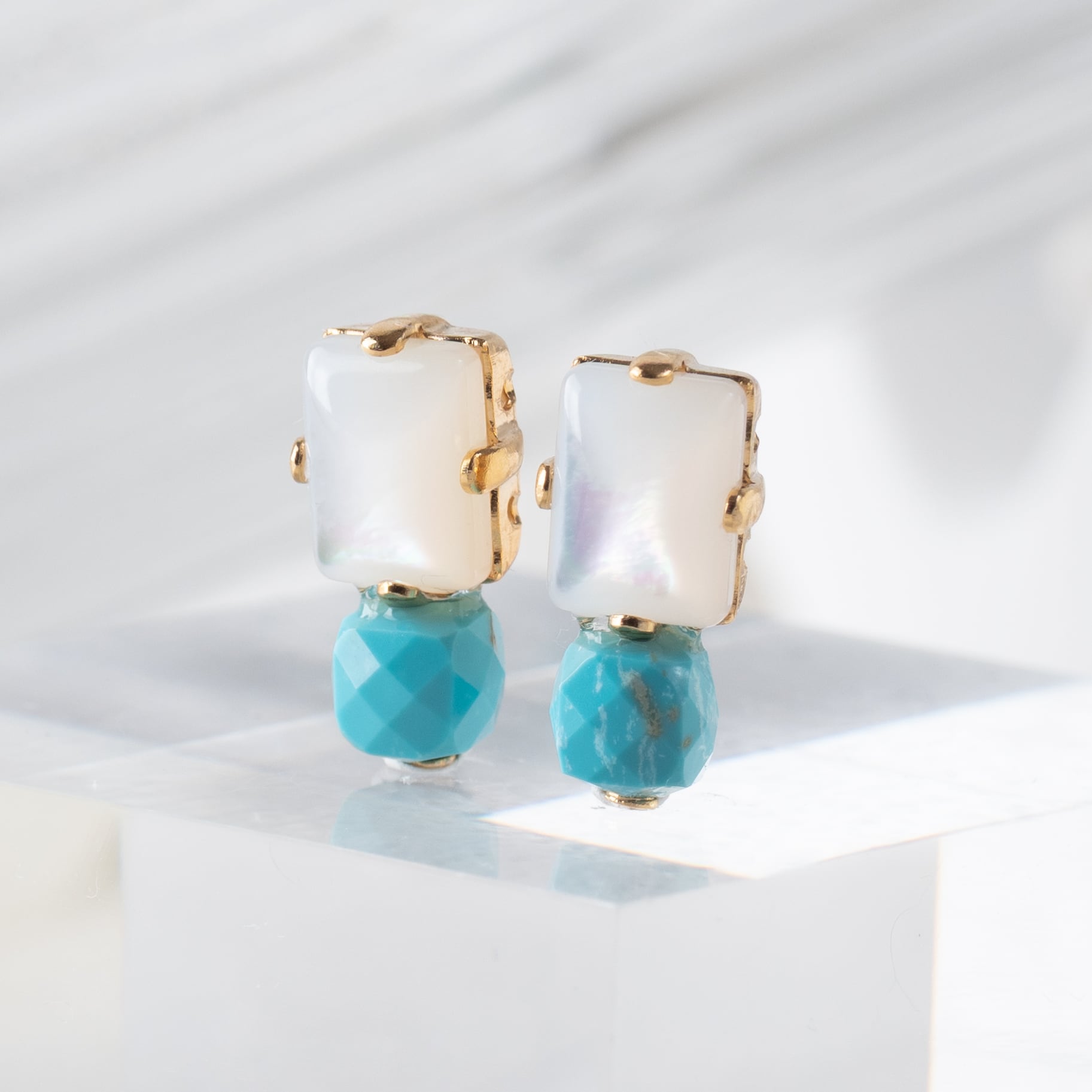 シャープなカットが輝くマグネサイトターコイズを組み合わせた、