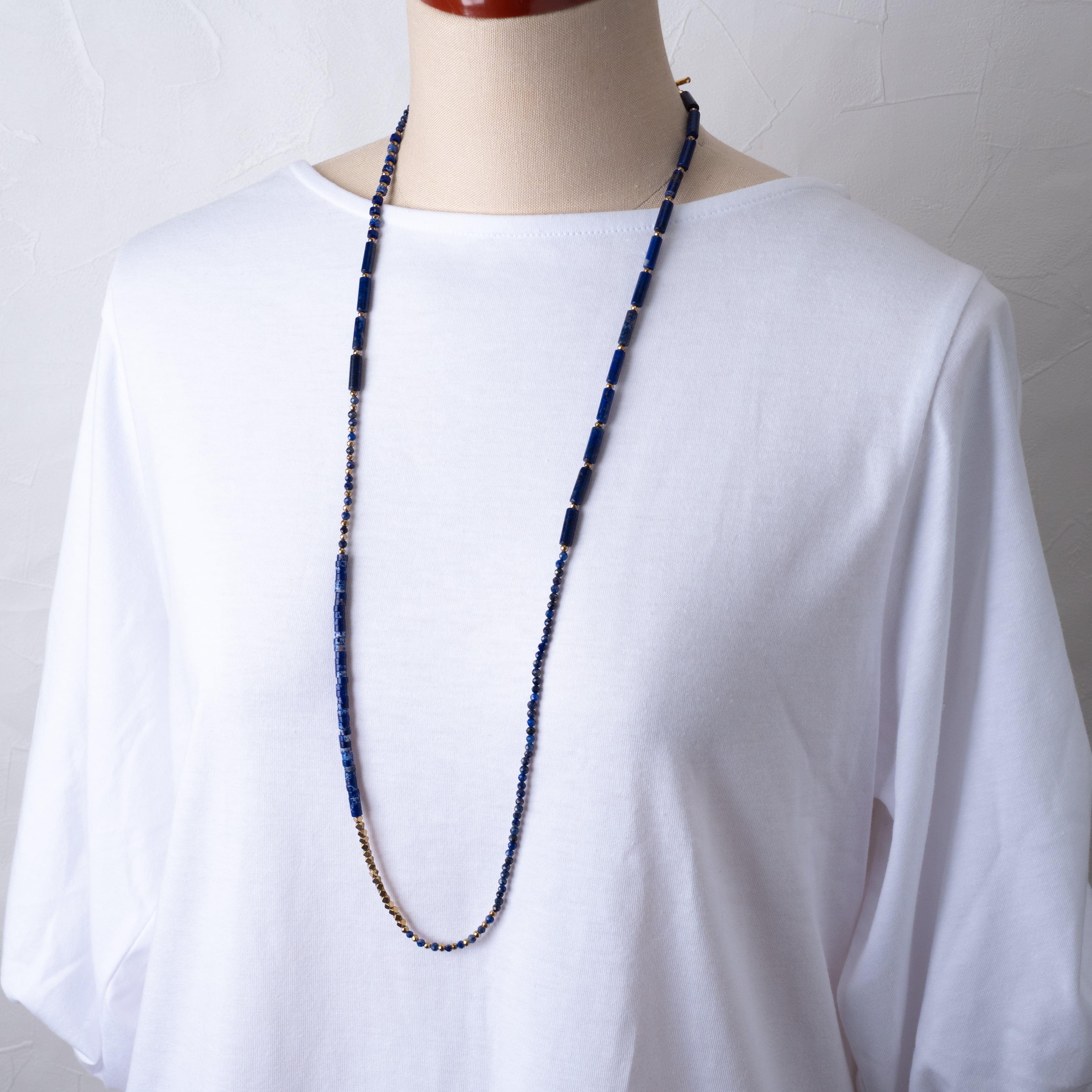 贅沢に組み合わせた、約85cmのロングネックレス。