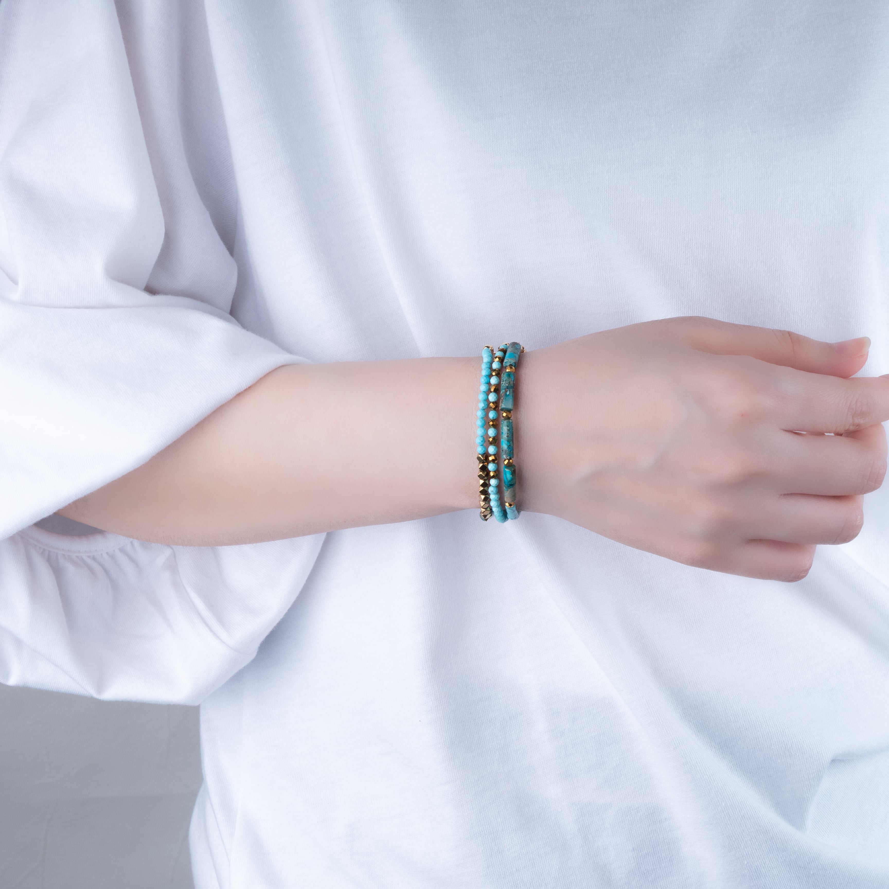 3種類の合成ターコイズを贅沢に組み合わせた、