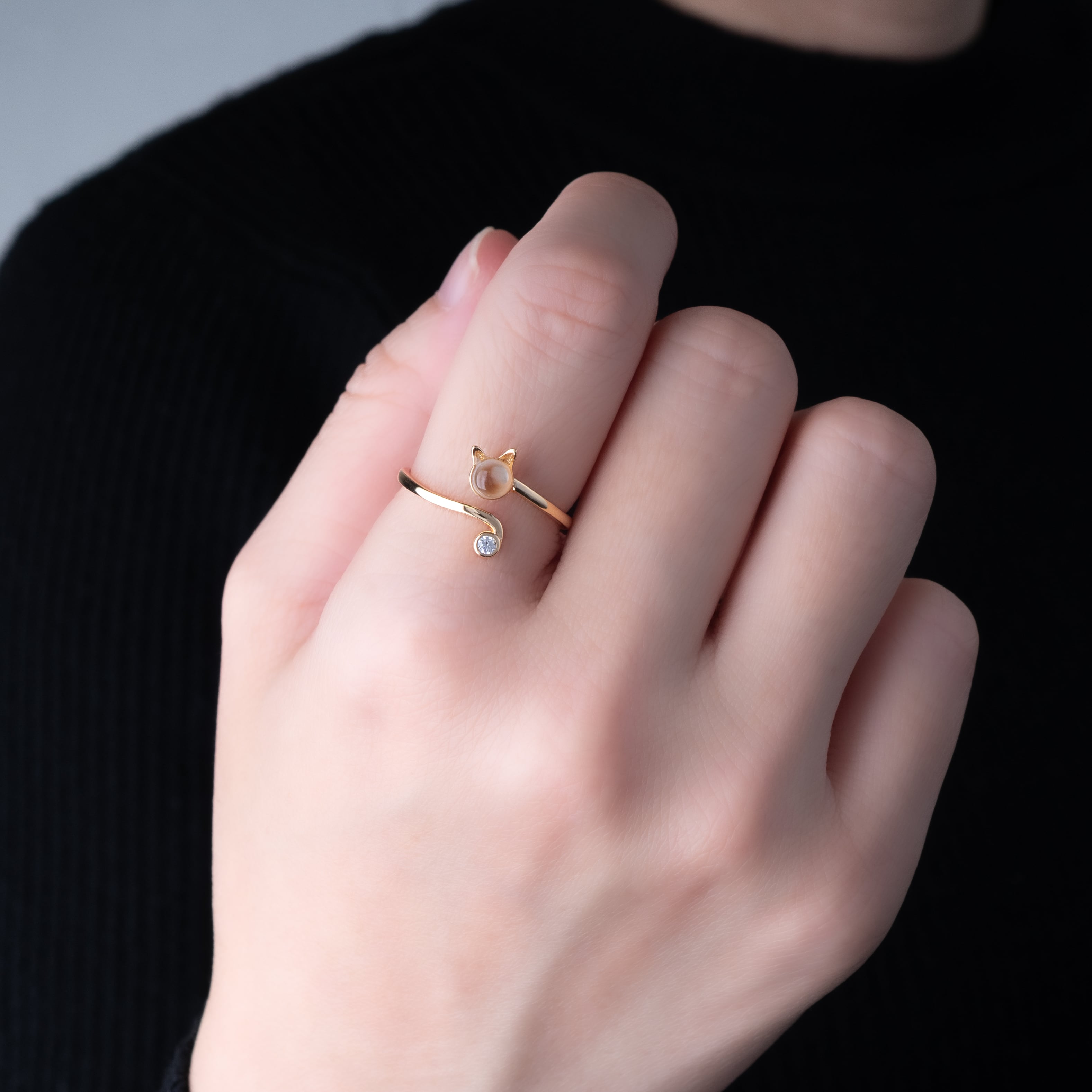 まるで猫が指にじゃれついているような、愛らしいフォークリングです。