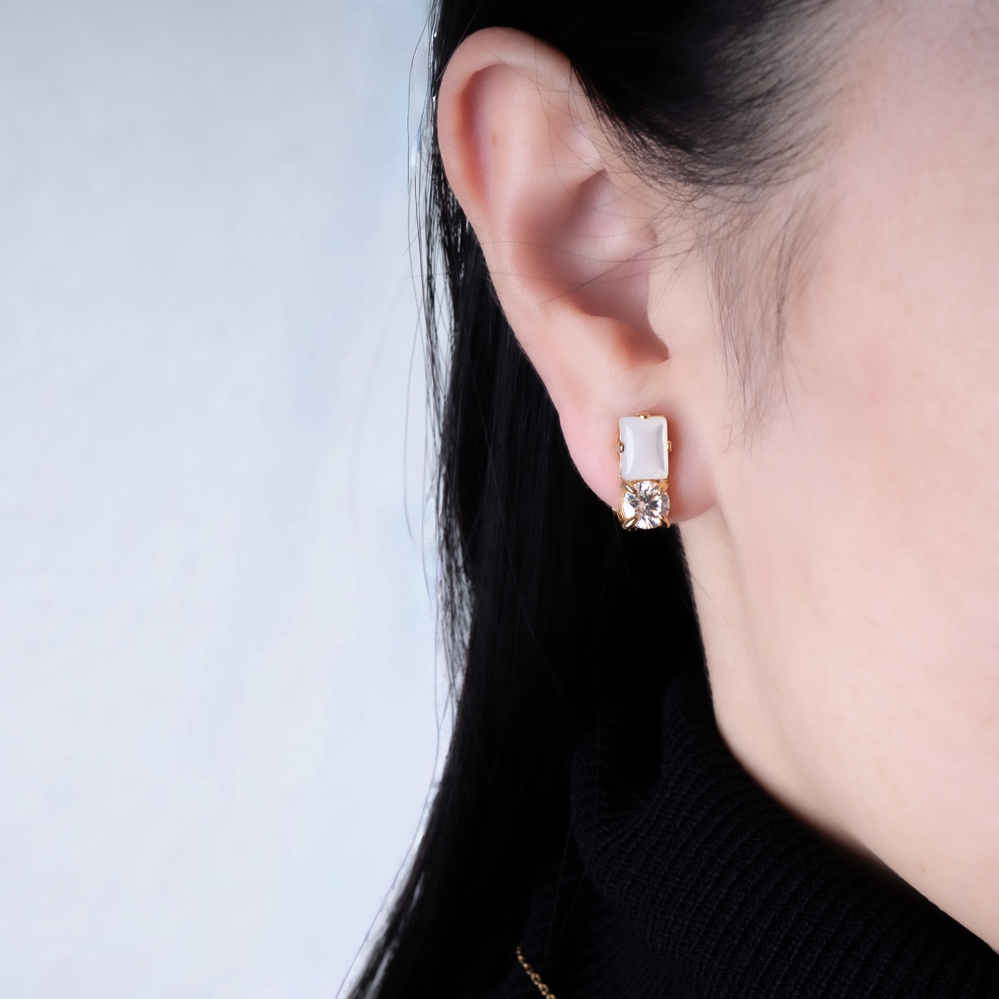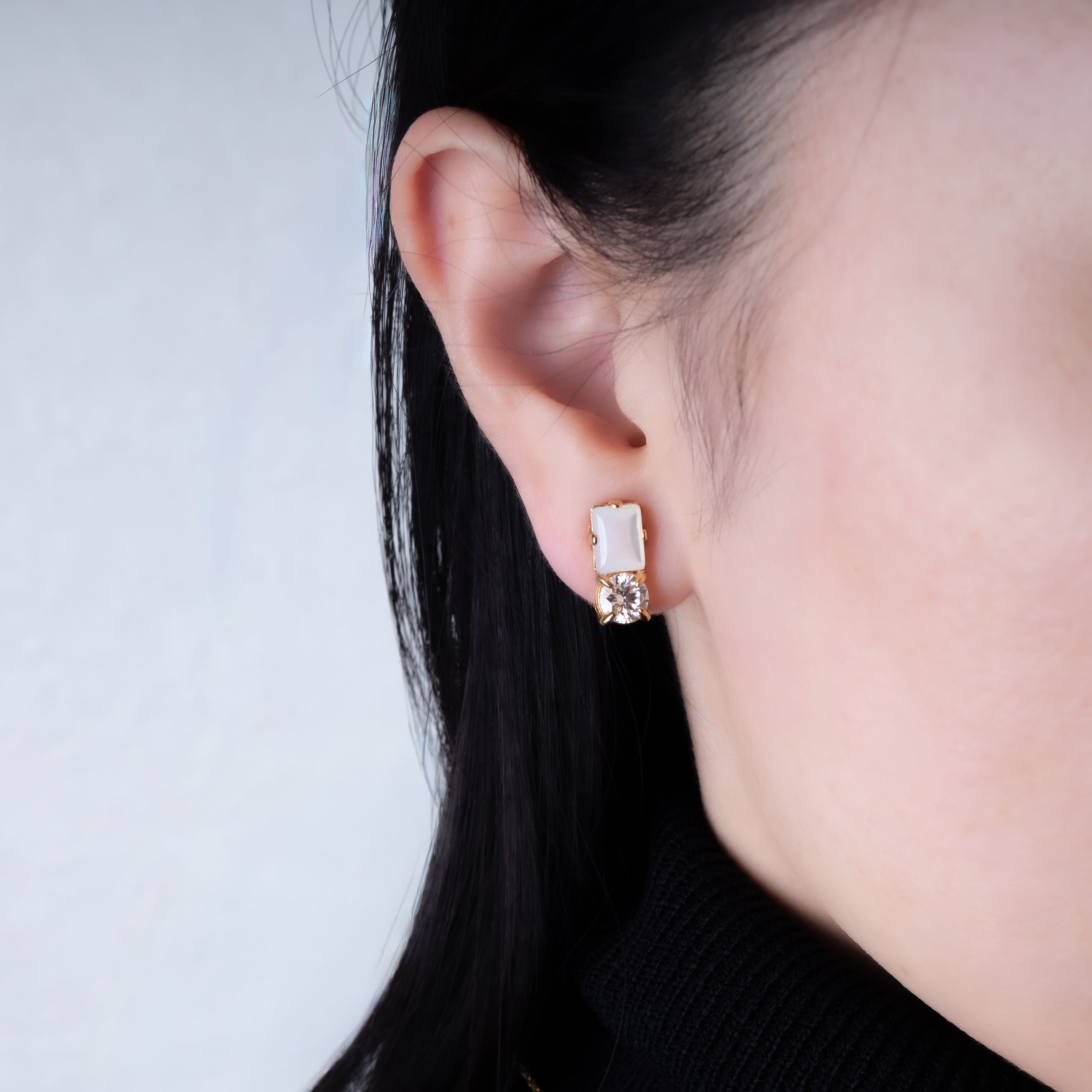 ホワイトシェル×大粒モアサナイト ピアス(イヤリング変更可)