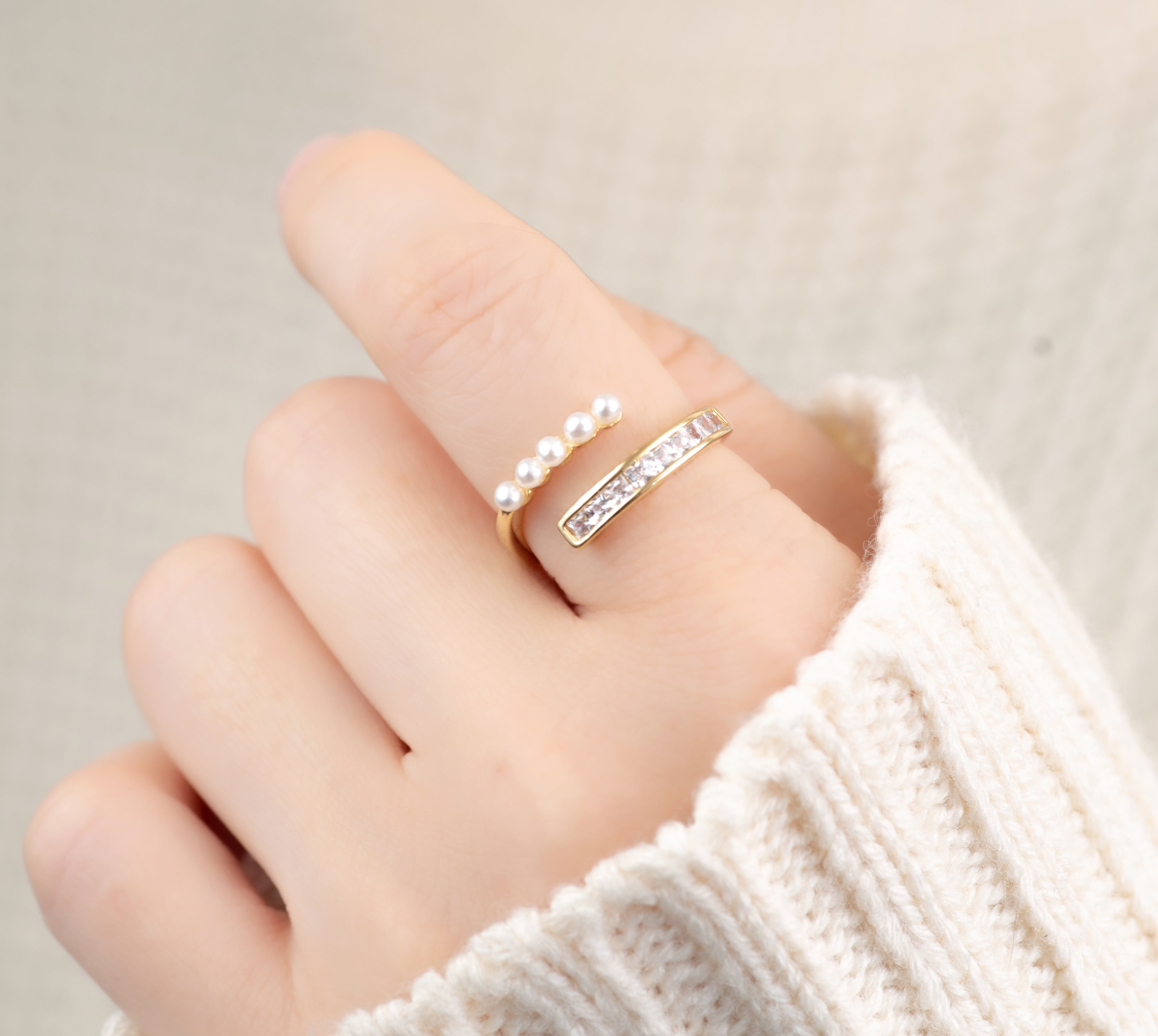 パールとジルコニアラインのリング
