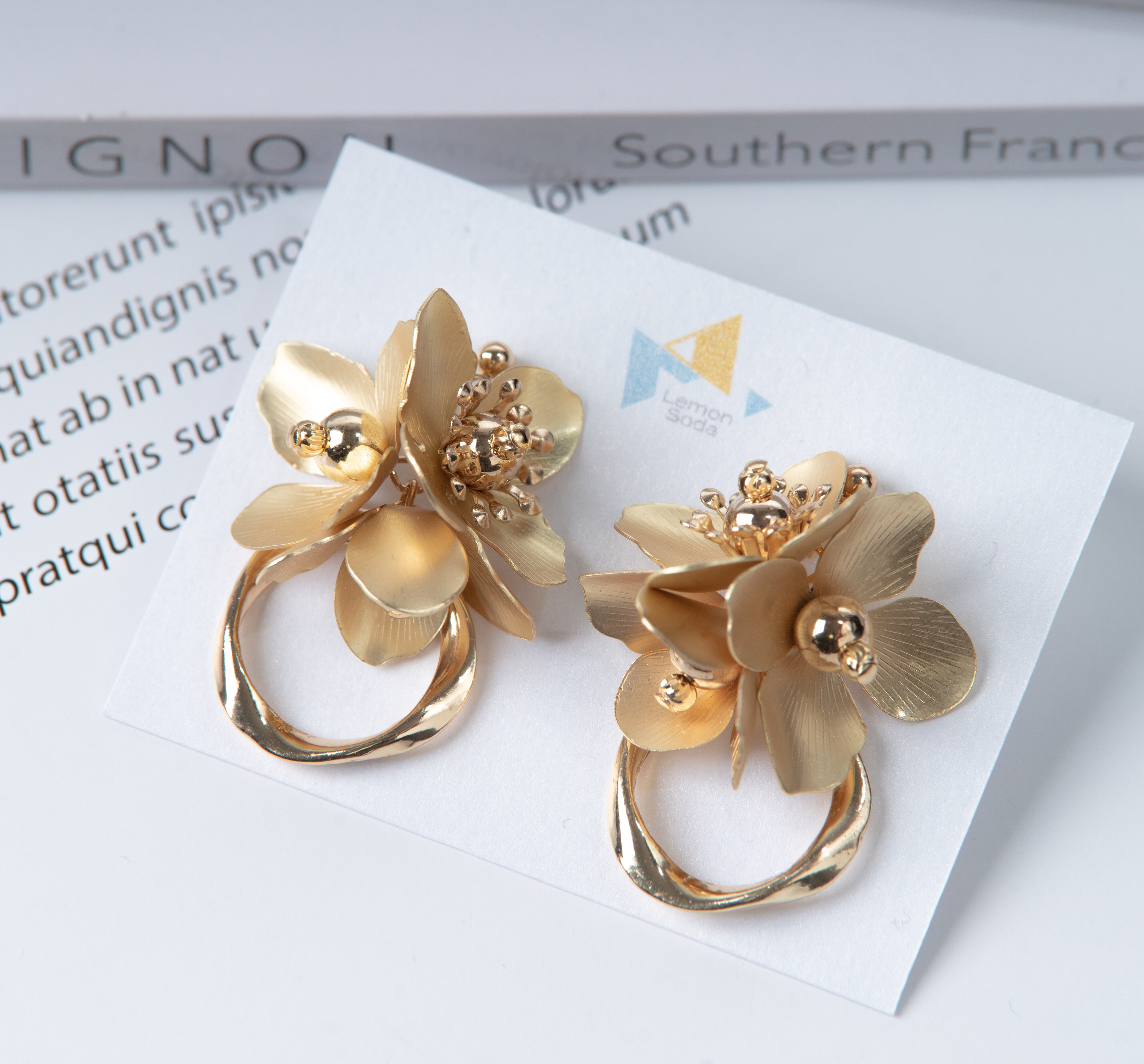 アンティーク調の大ぶりなマットゴールドフラワーと