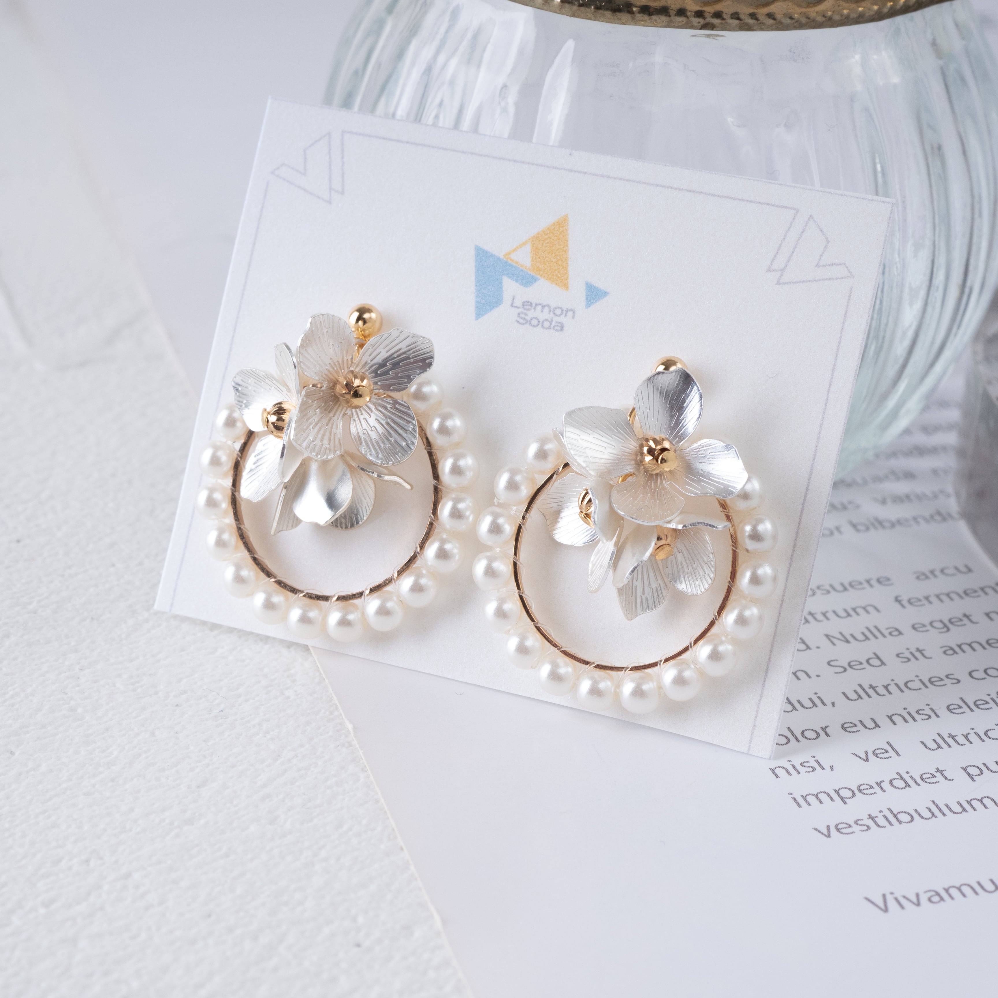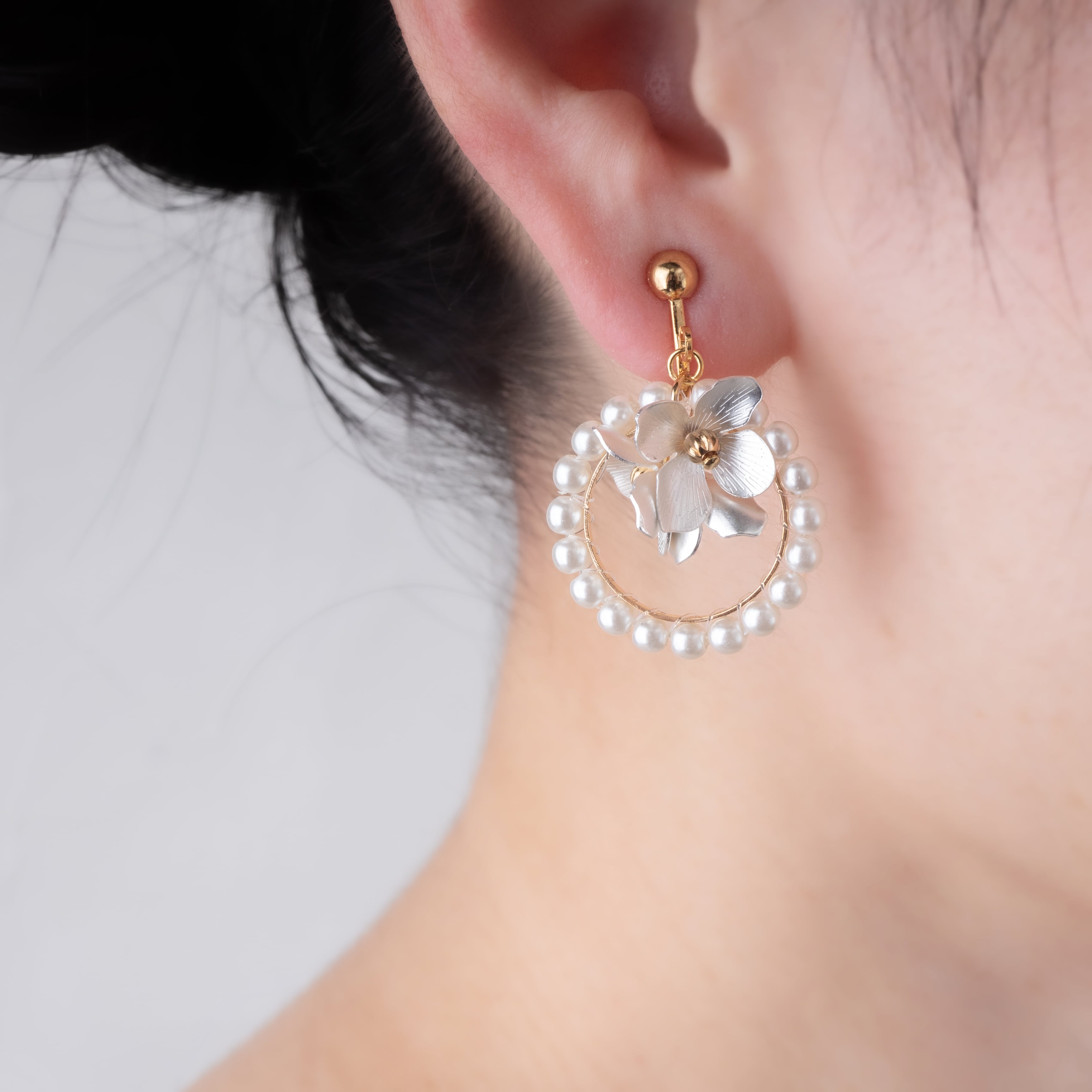 プレシャスゴールドフラワーとパールリング イヤリング/ピアス