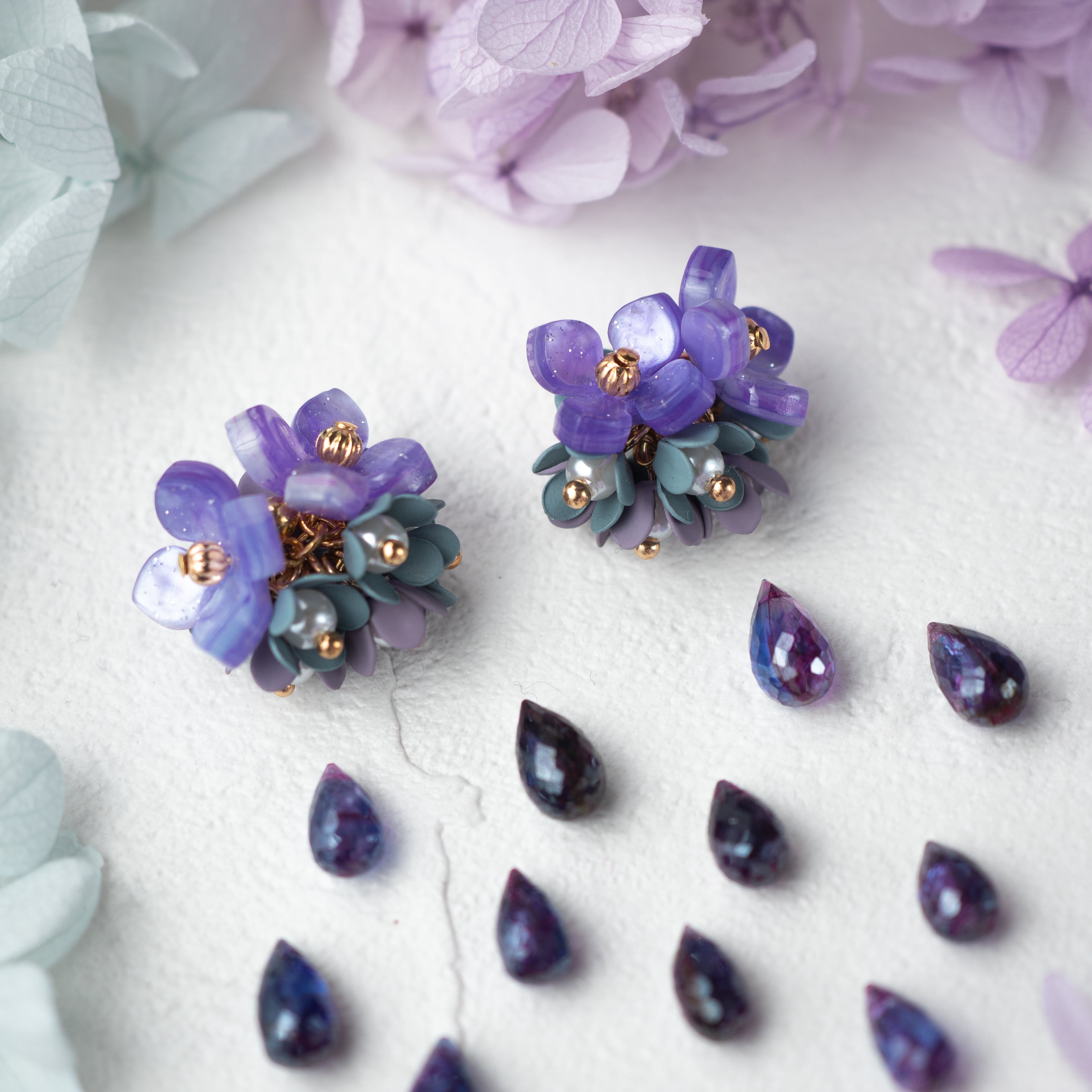 ▶コロンとした紫陽花モチーフアクセサリー作りました!