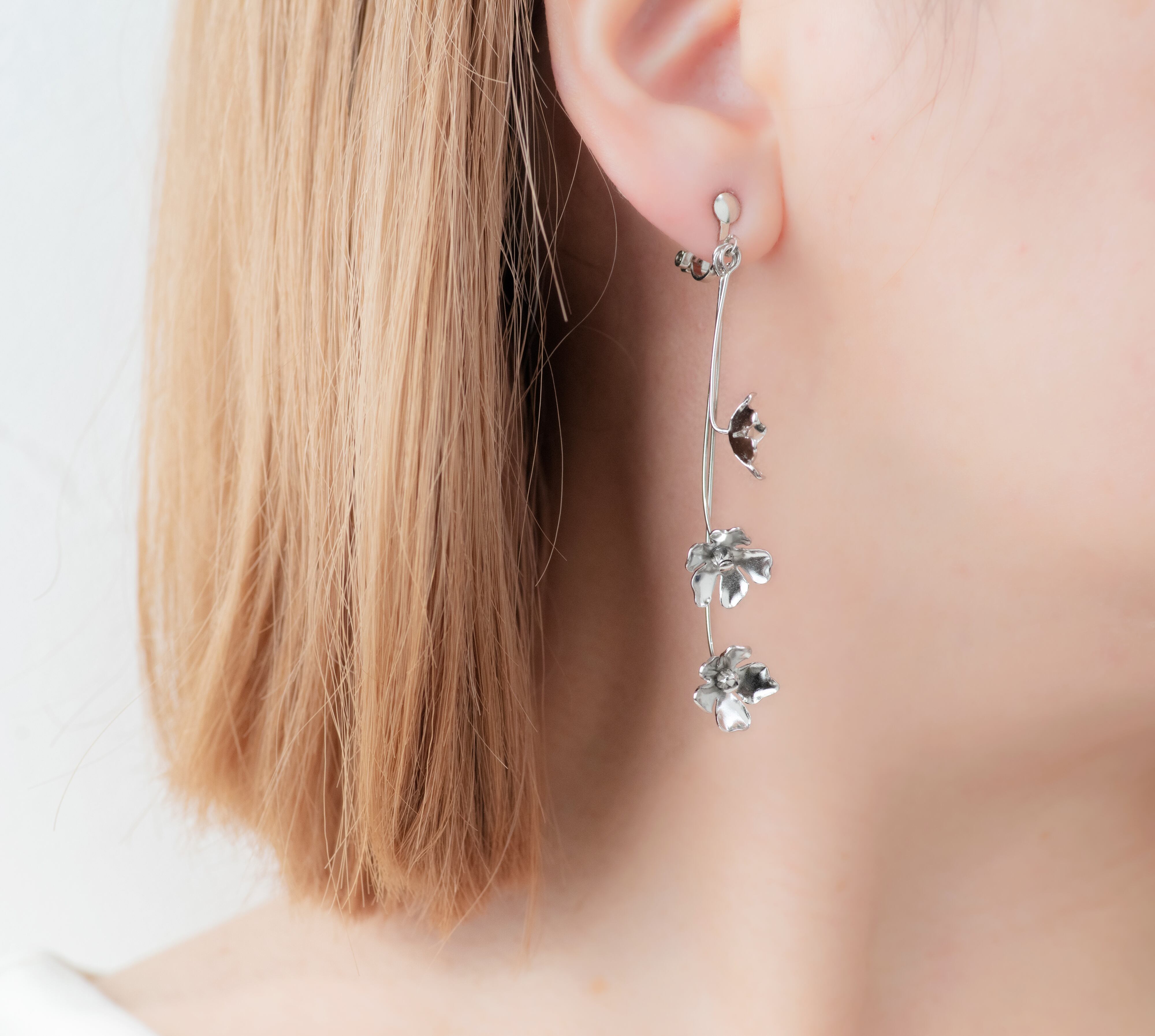 ゆれるシルバーフラワー イヤリング(ピアス)