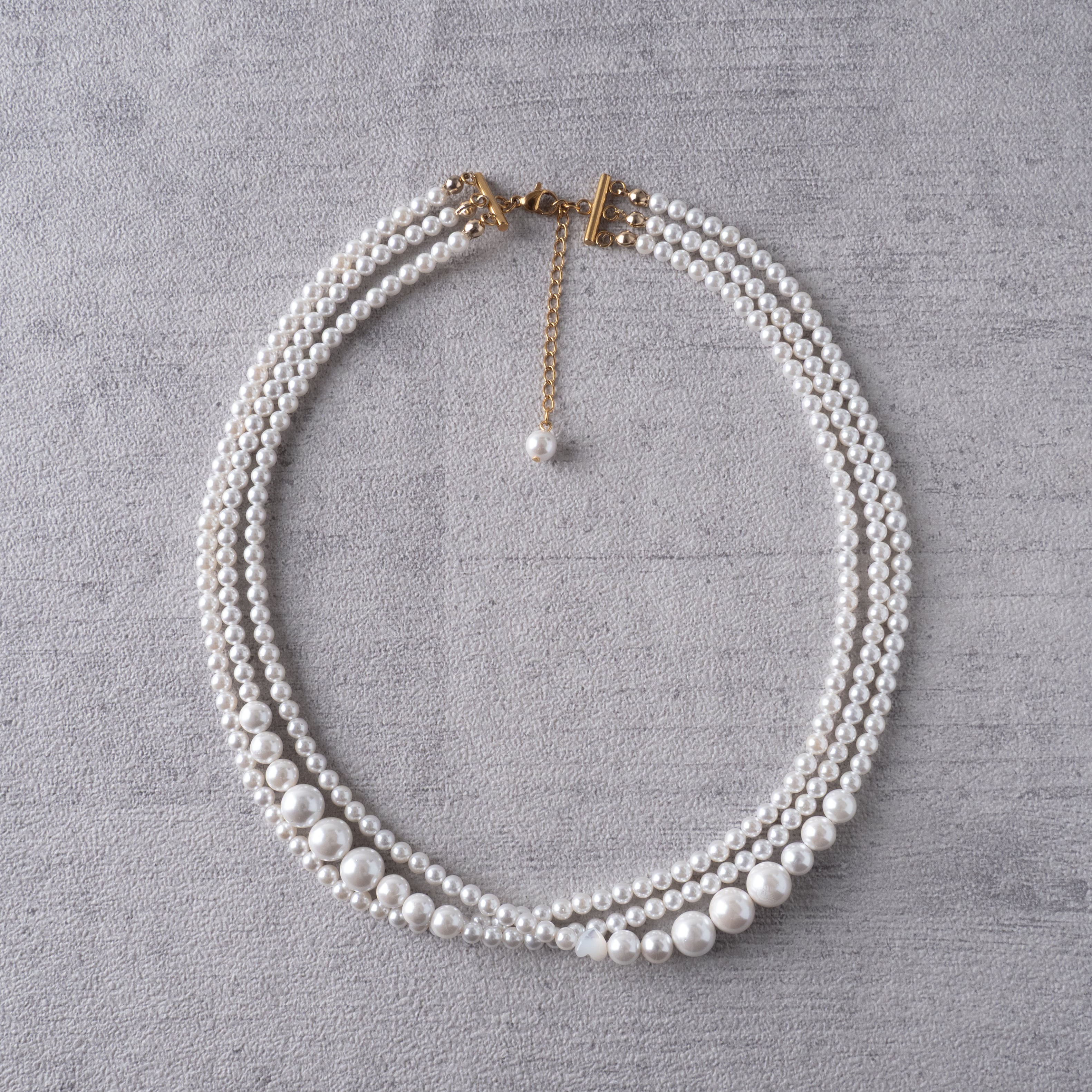 【重ねづけ風】3連パールネックレス 結婚式・卒業式・入学式・デイリーOK